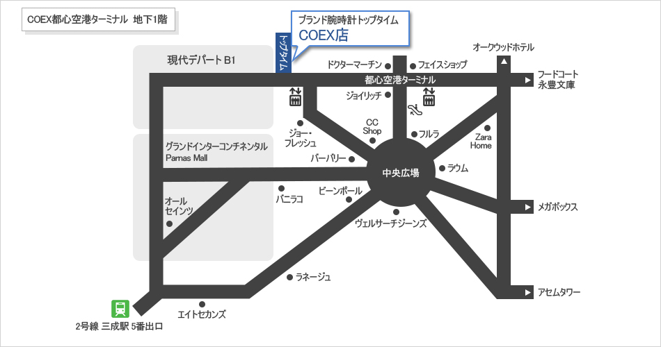 ソウル市 江南区 三成洞159 空港ターミナル地下1階 Q120(現代デパート入口の最初の店舗)