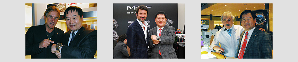 スイスのカビノティエ(Cabinotiers) 独立工房の時計職人と記念撮影する韓国のチェ・チャンムク名匠(トップタイム代表)
