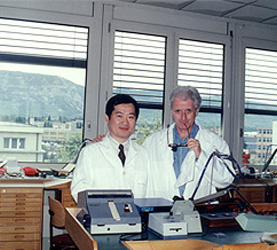1993年4月 VACHERON CONSTANTIN社の首席時計技術者と共に |