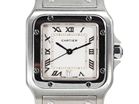 까르띠에 산토스 갈베 Santos Galbee - Stainless steel, 흰판, 로마 숫자, 날짜, 사파이어 크리스탈, 쿼츠, L, Size: 29mm