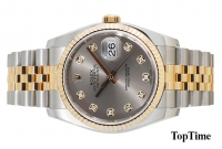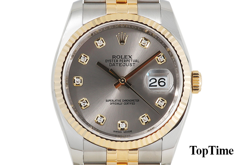 롤렉스 데이저스트 콤비 Datejust - 18K Yellow Gold & Stainless Steel Combi, 회색판, 문자판 오리지널 천연다이아몬드, 날짜, 사파이어크리스탈, 오토매틱, Size : 36mm