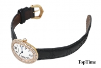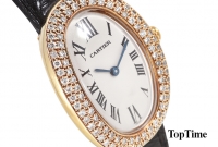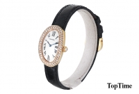 까르띠에 베누아 1920 Baignoire - 18K Yellow Gold, 흰판, 로마 숫자, 베젤 천연 다이아몬드, 사파이어 크리스탈, 가죽 밴드, 쿼츠, 스몰, Size : 22.5 x 31 mm