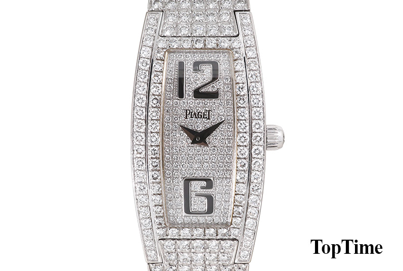 피아제 라임라이트 Limelight - 18K White Gold, 문자판ㆍ베젤ㆍ밴드 오리지널 천연 다이아몬드, 아라비아 숫자, 사파이어 크리스탈, 쿼츠, Size : 18 x 33 mm